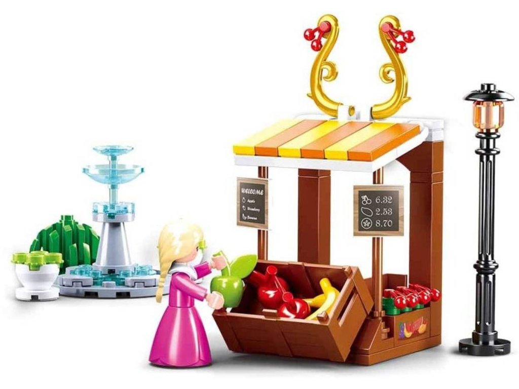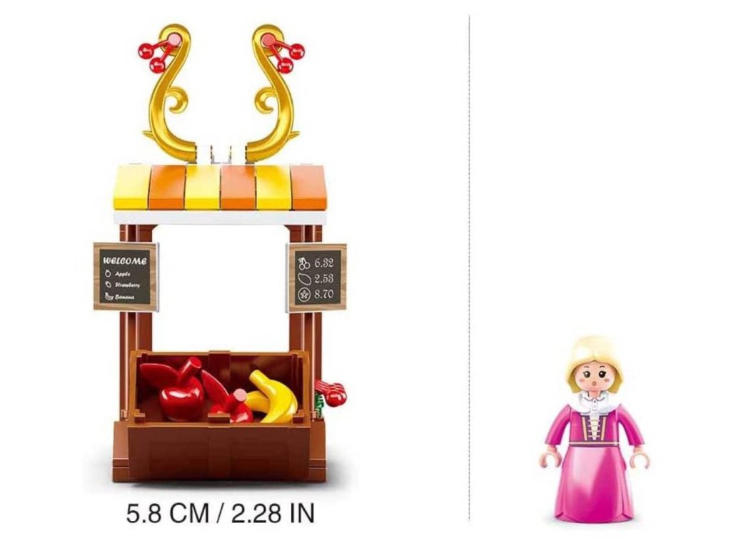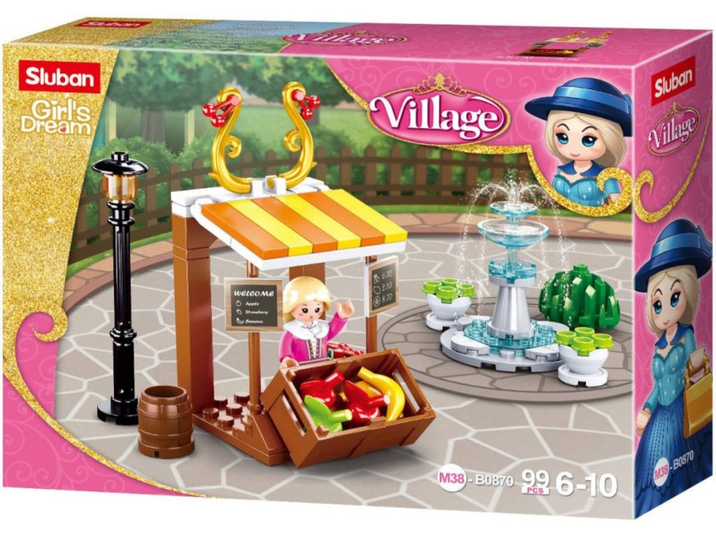 SLUBAN M38-B0870 Stánek s ovocem z kolekce Girls Dream Village. Kvalitní plastová stavebnice. 99 dílků + 1 figurka. Lze kombinovat s většinou ostatních známých stavebnic.Stavebnice Sluban je možno kombinovat s podobnými stavebnicemi mnoha dalších známých značek. Dílky jsou vyrobeny z certifikovaného nezávadného a odolného ABS plastu. Přesně do sebe zapadají a drží. Výrobce má svůj inovativní vývojový tým a budete překvapeni kvalitním zpracováním jak dílků, tak figurek. Zejména figurky jsou pýchou firmy Sluban. Mají realistický tvar, hlavičku i zápěstí na pohyblivém kloubu, v pase se otáčejí o 360° a nožičky jsou pohyblivé ve směru chůze a zároveň si zachovaly plnou kompatibilitu s kostičkami. Je to malá figurka s velkou budoucností.