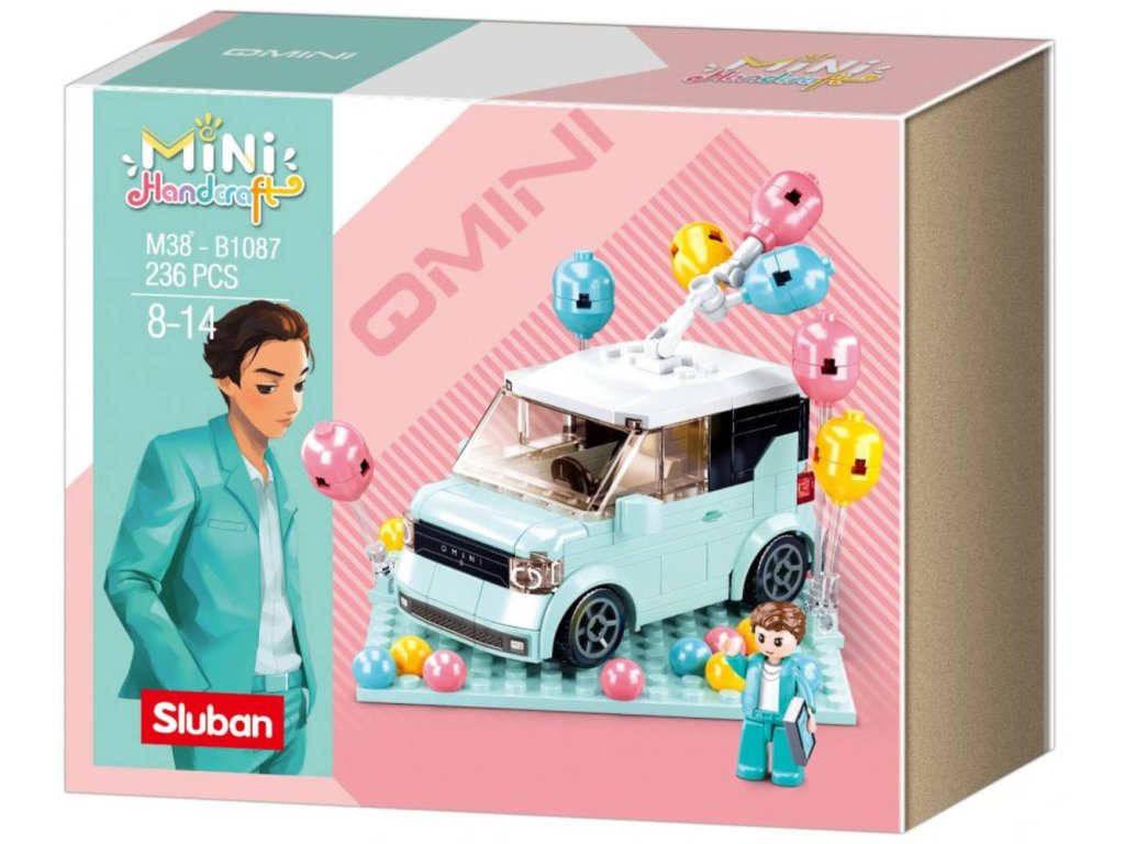 SLUBAN Mini Handcraft (M38-B1087) MiniQ Modrý vůz. Kvalitní plastová stavebnice. Lze kombinovat s většinou ostatních známých stavebnic. Součástí 1 figurka.Stavebnice Sluban je možno kombinovat s podobnými stavebnicemi mnoha dalších známých značek. Dílky jsou vyrobeny z certifikovaného nezávadného a odolného ABS plastu. Přesně do sebe zapadají a drží. Výrobce má svůj inovativní vývojový tým a budete překvapeni kvalitním zpracováním jak dílků, tak figurek. Zejména figurky jsou pýchou firmy Sluban. Mají realistický tvar, hlavičku i zápěstí na pohyblivém kloubu, v pase se otáčejí o 360° a nožičky jsou pohyblivé ve směru chůze a zároveň si zachovaly plnou kompatibilitu s kostičkami. Je to malá figurka s velkou budoucností.