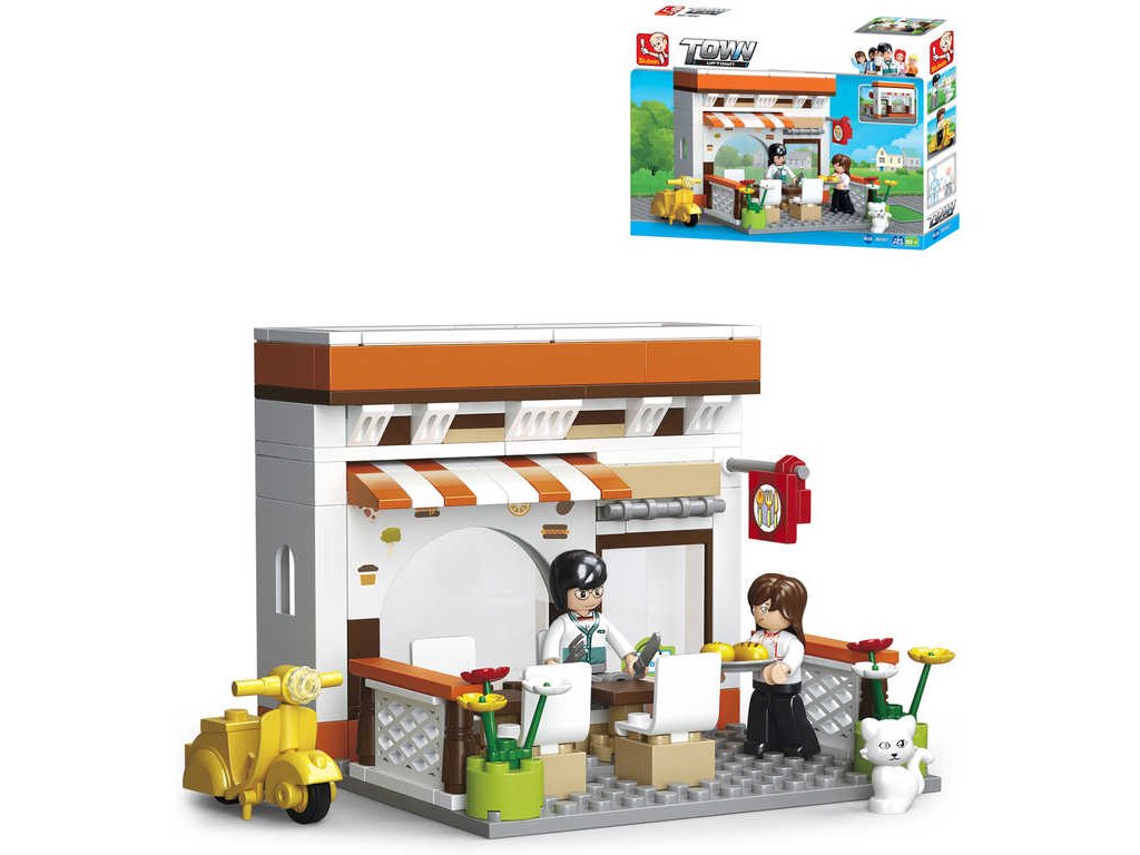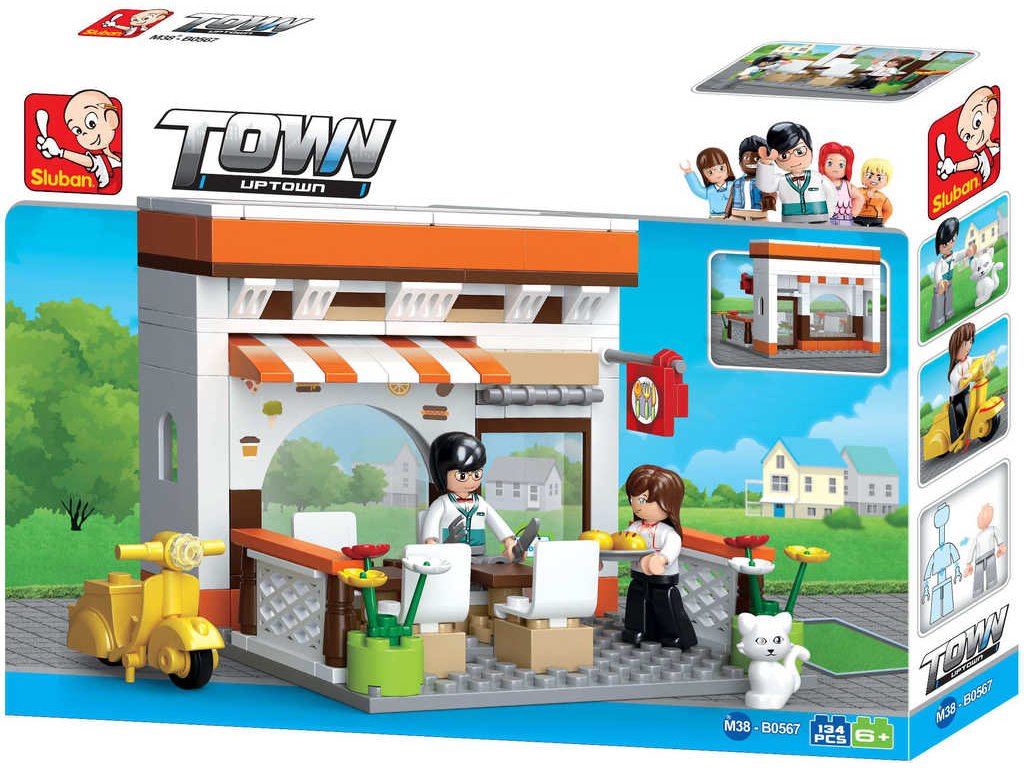 SLUBAN Stavebnice TOWN Bistro set 134 dílků + figurka 2ks plast