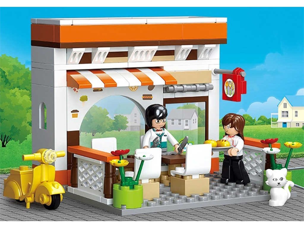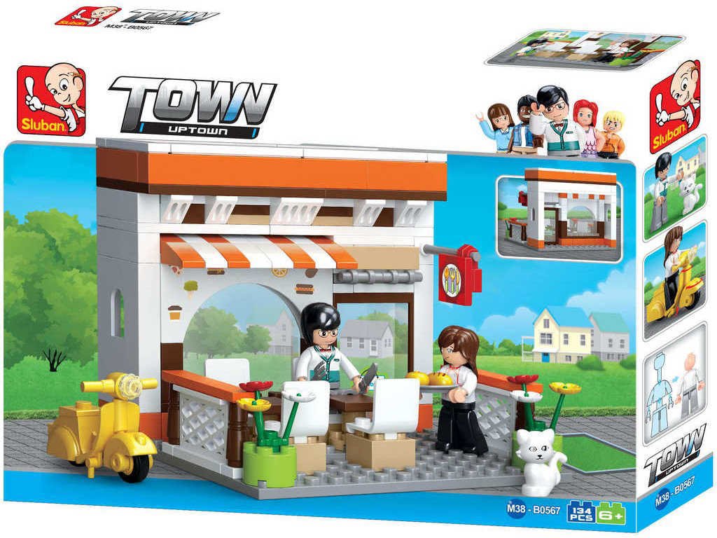 SLUBAN Stavebnice TOWN Restaurace set 134 dílků + 2 figurky plast