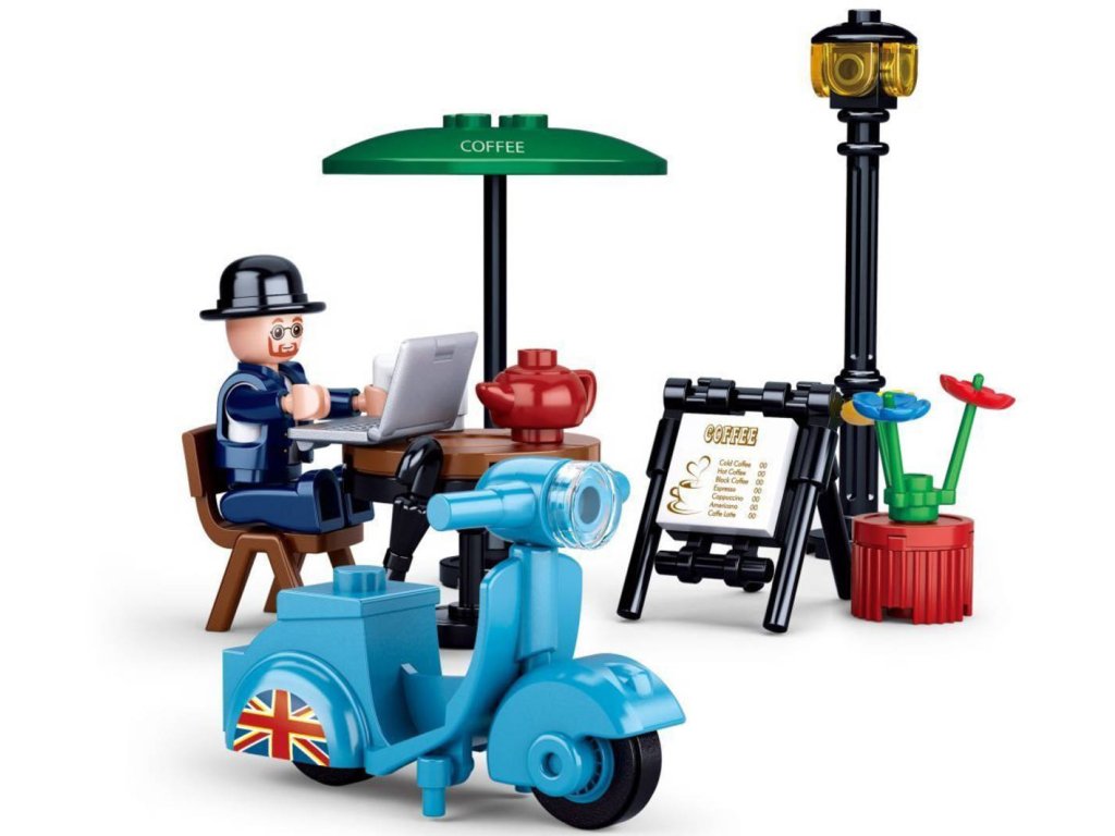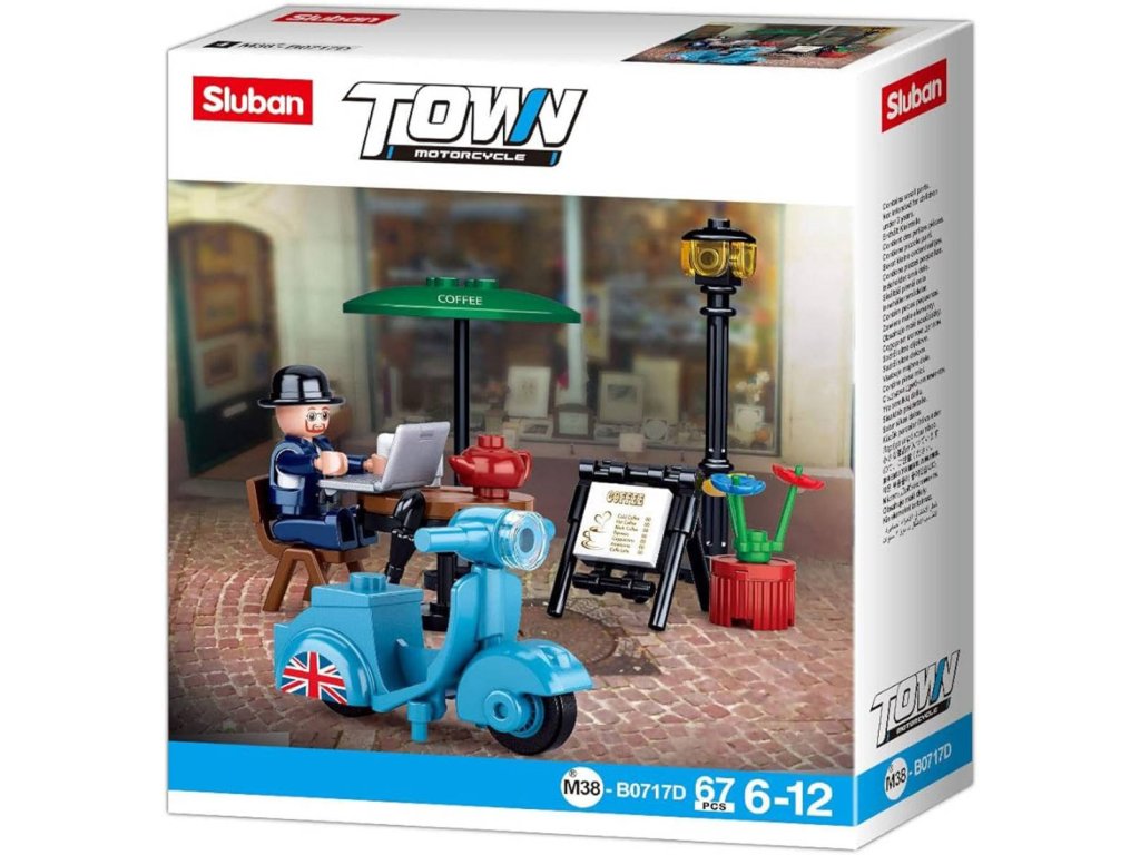 SLUBAN Town (M38-B0717D) Jezdec na skútru. Kvalitní plastová stavebnice. Lze kombinovat s většinou ostatních známých stavebnic. Součástí 1 figurka.Nová série 6 motorkářů je velmi pěkná a propracovaná do detailů. Tento pán motorkář je každým coulem gentleman a má rád krásné prostředí. Rád jezdí pracovat na svém notebooku do kavárny se svým paraplíčkem.