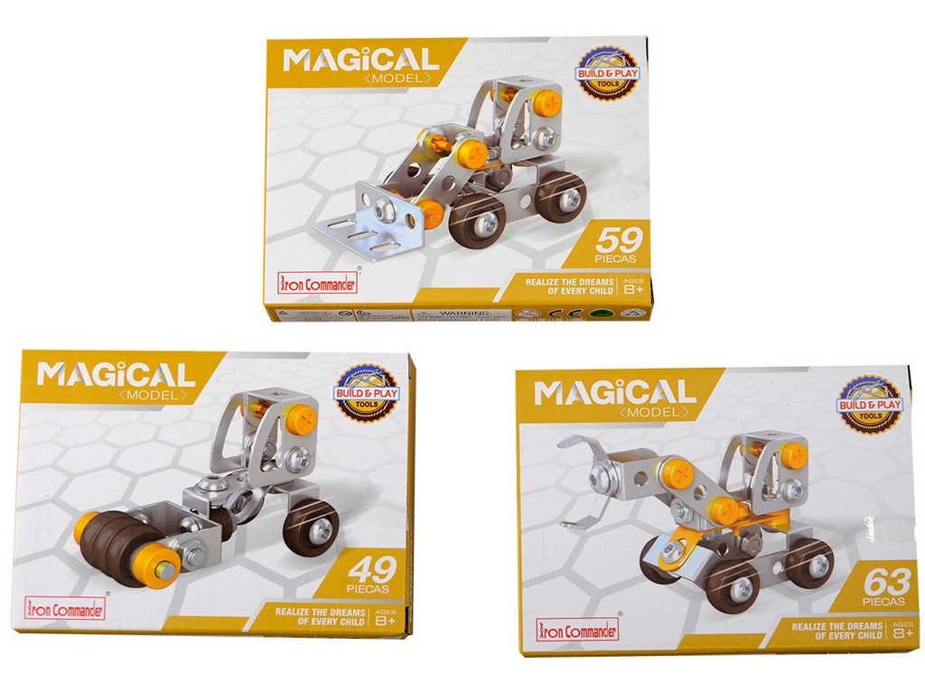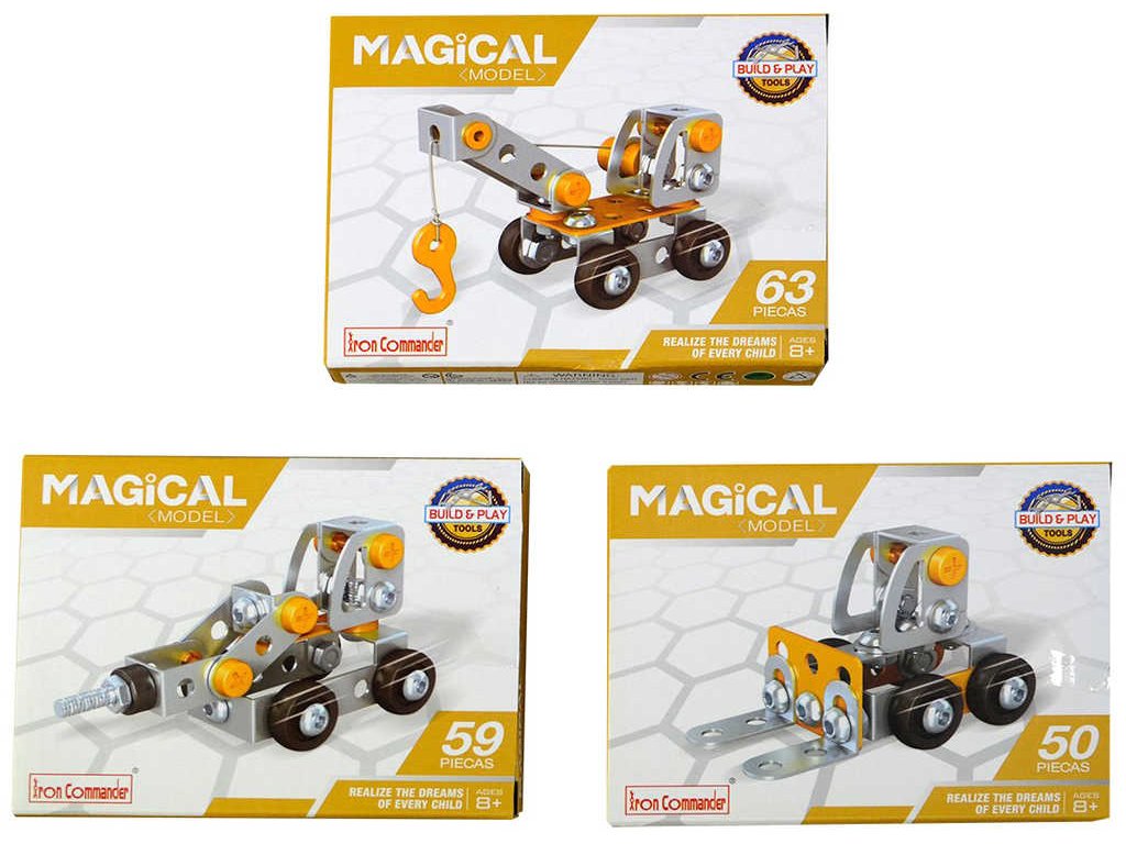 Originální technická, montovací stavebnice, díly z kovu a plastu. Hračka v šesti variantách provedení. Baleno v krabici. Součástí balení jsou také dva pracovní nástroje a návod s výčtem všech součástek.Stavebnice, ze které si mohou kluci sestavit různé pracovní stroje a vozidla. Ideální hračka pro rozvoj tvořivých a kombinačních schopností dítěte. Stavebnice také rozvíjí logické myšlení, učí děti trpělivosti a vytrvalosti.