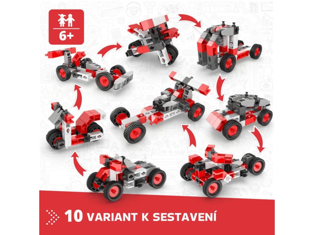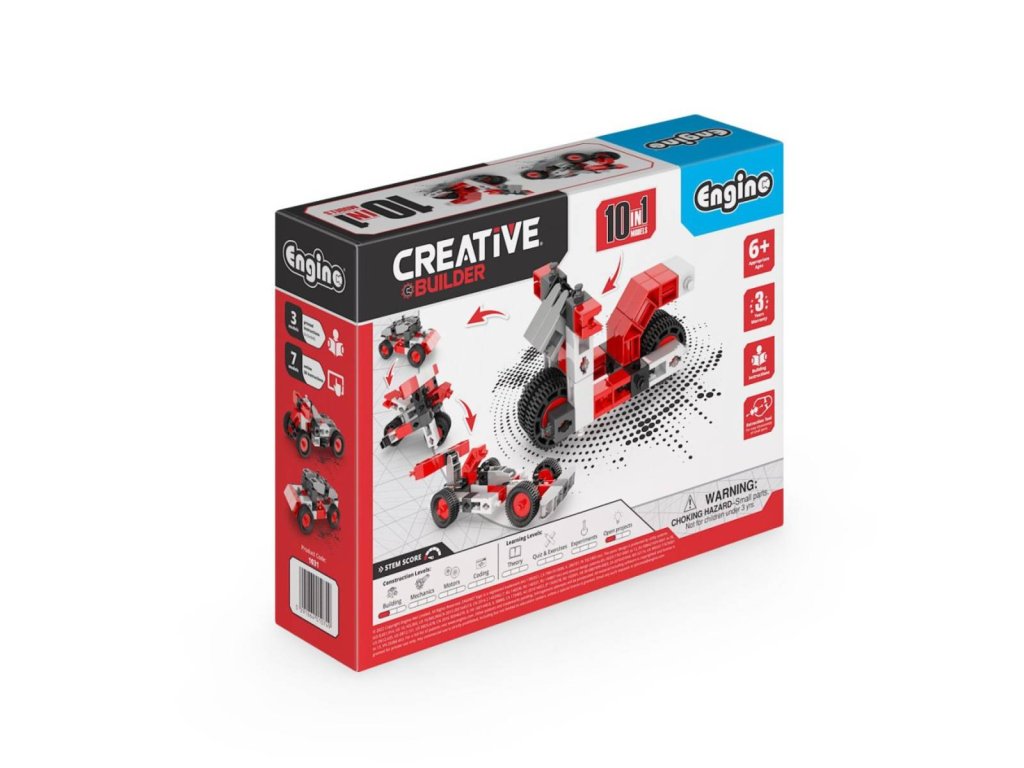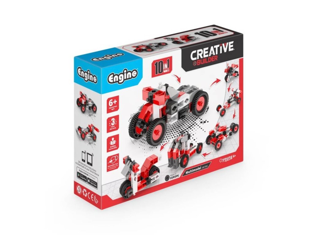 Stavebnice řady Engino Creative Builder podporují tvořivost a manuální zručnost dětí. Umožňují snadno a rychle přetvářet jeden model na druhý. Dle přiloženého návodu a mobilní aplikace krok po kroku snadno vytvoříte 10 různých modelů. Interaktivní aplikace Engino kidCAD® zobrazí modely ve 3D, které si můžete libovolně otáčet, prohlížet a upravovat. Kompatibilní s ostatními druhy stavebnic Engino. Vhodné od 6 let, vyrobeno na Kypru EU.