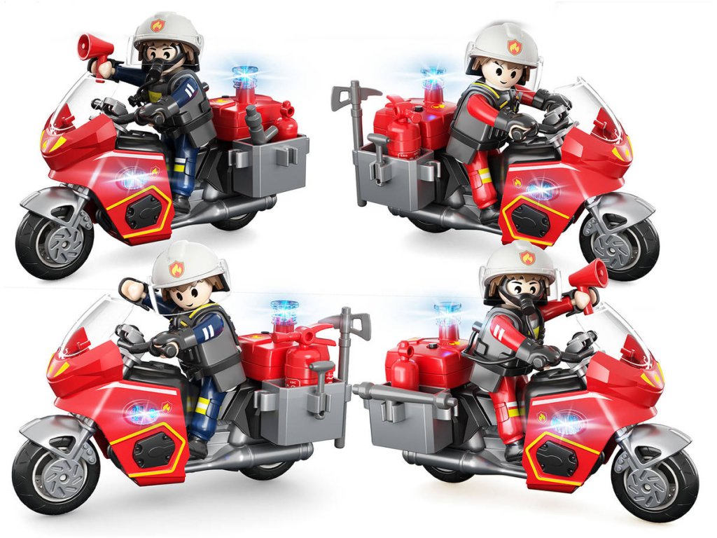 Stavebnice figurka hasič na motorce s doplňky na baterie Světlo 4 druhy