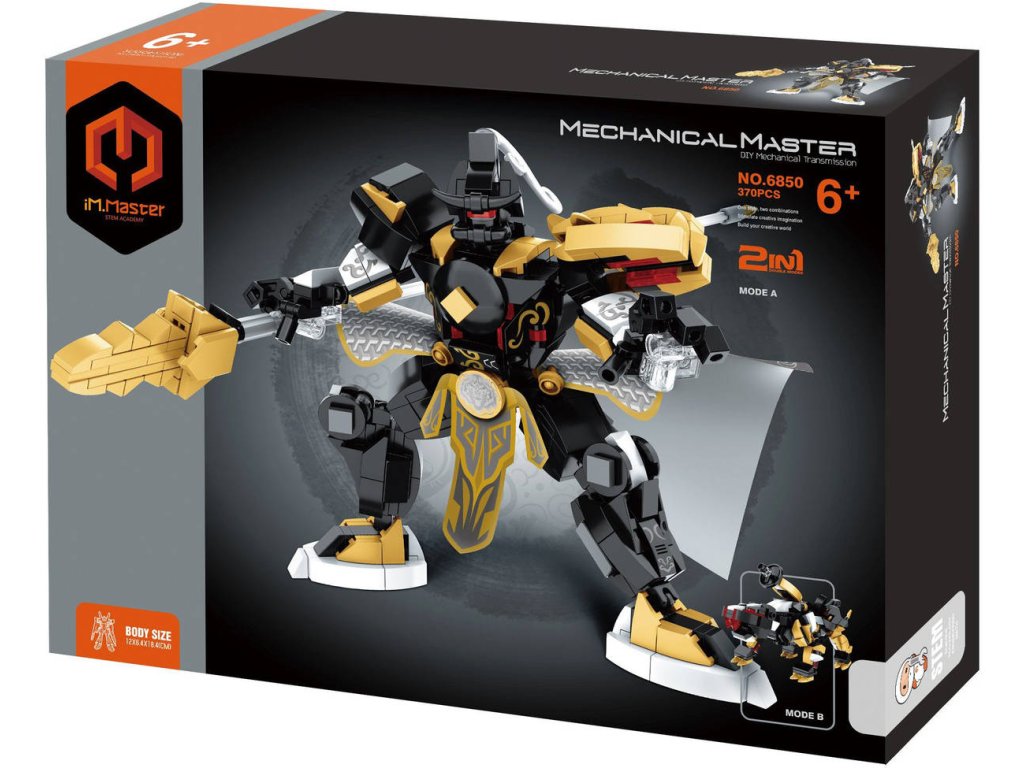 Mechanical Master: Mechanický bojový robot 2in1. Kvalitní plastová stavebnice, 370 dílků, velikost modelu 19cm.Sestav si futuristického robota, který je připraven do akce! Tato technická stavebnice iM.MASTER obsahuje 370 plastových dílků pro sestavení propracovaného modelu mechanického bojového robota s pohyblivými klouby, zbrojí a dynamickým designem. Skvělá volba pro děti, které milují techniku, robotiku a kreativní výzvy. Hra podporuje rozvoj jemné motoriky, trpělivosti i logického myšlení. Součástí balení je přehledný návod.