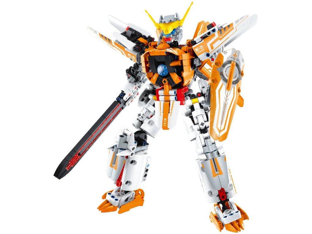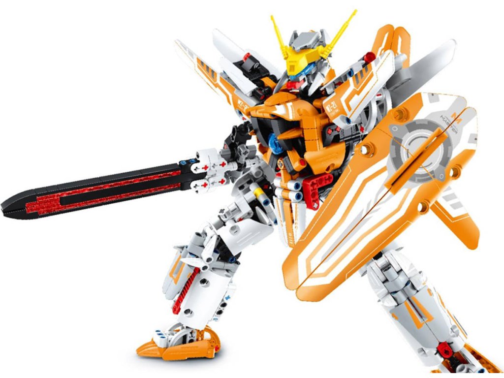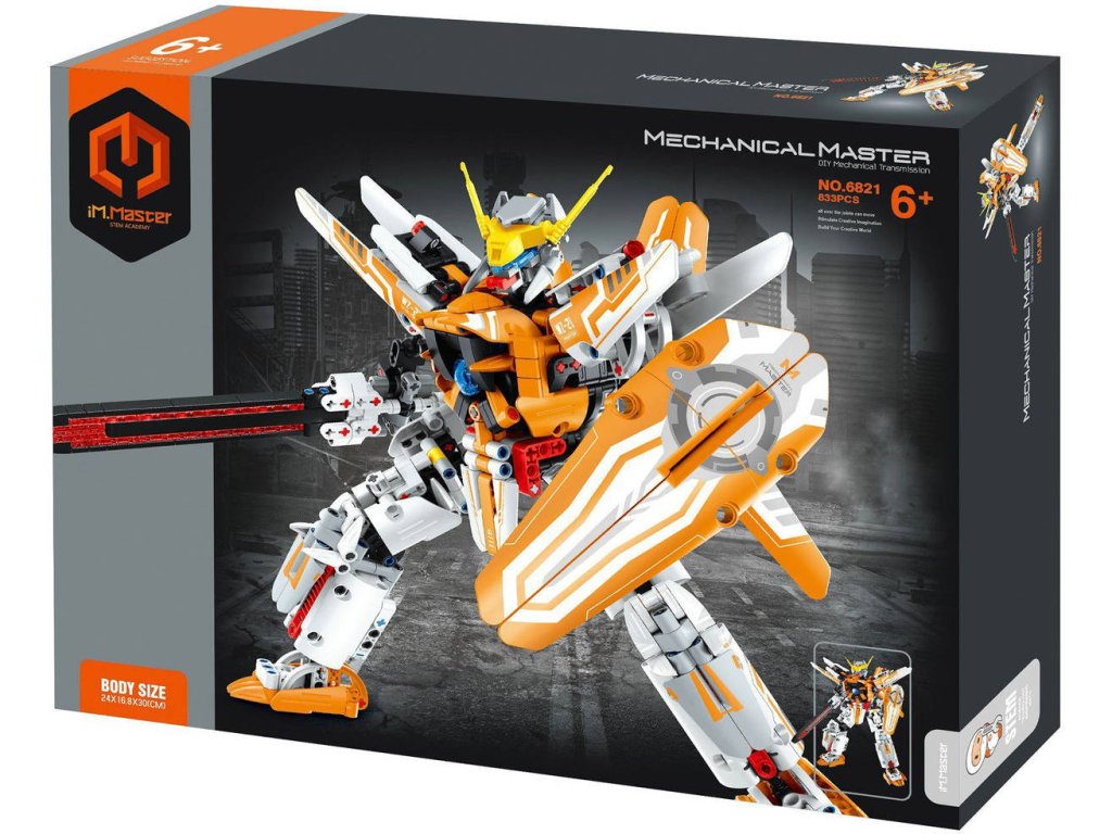Mechanical Master: Mechanický bojový robot. Kvalitní plastová stavebnice, 833 dílků, velikost modelu 30cm.Tato stavebnice umožní sestavit impozantního robota s oranžovo-bílou výzbrojí, dlouhým mečem a masivním štítem. S více než 800 dílky, robota lze dynamicky rozpohybovat, pohyblivé ruce, nohy, hlava, zbraně. Atraktivní barevné provedení a futuristický vzhled. STEM vzdělávání: rozvoj mechanického myšlení, prostorové představivosti a motoriky.)