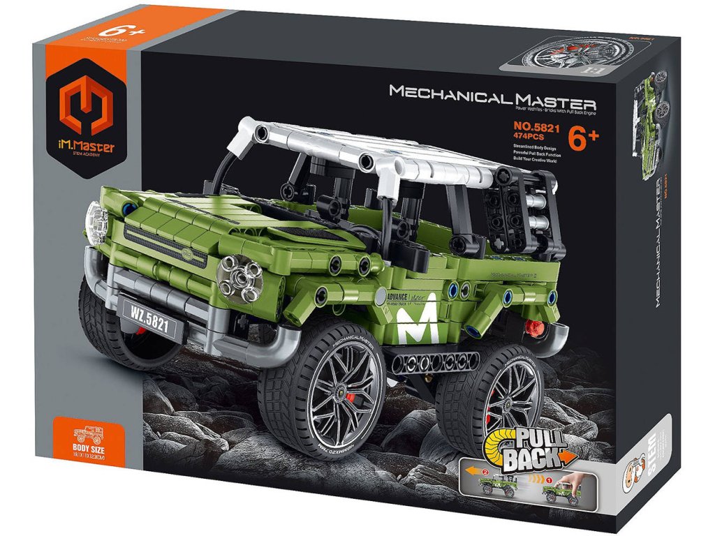 Mechanical Master: Terénní auto, džíp s pohonem na zpětný chod. Kvalitní plastová stavebnice, 474 dílků, velikost modelu 19cm.Objevte nekonečnou zábavu se stavebnicí IamMaster terénní auto! Tento set obsahuje 474 plastových dílků, ze kterých můžete postavit terénní auto a nebo cokoli, co Vaše fantazie vymyslí. Ideální pro děti, které milují stavění a tvoření.