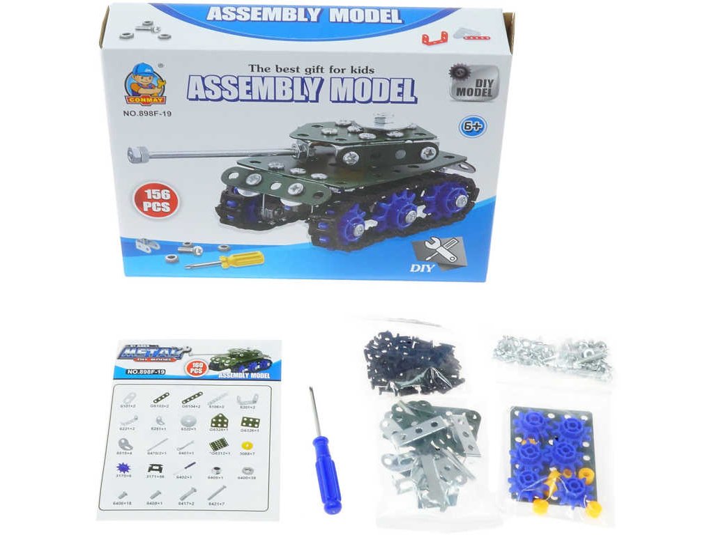 Stavebnice kovová konstruktor Tank 156 dílků set se šroubovákem