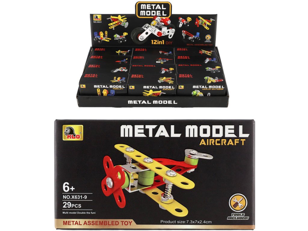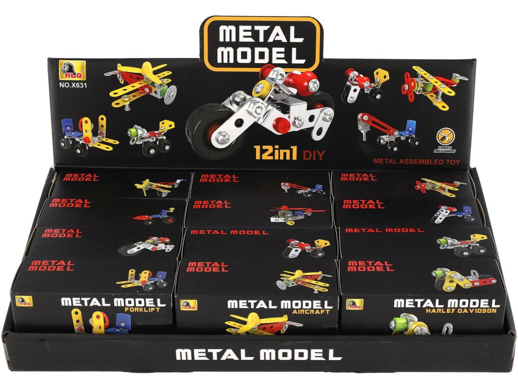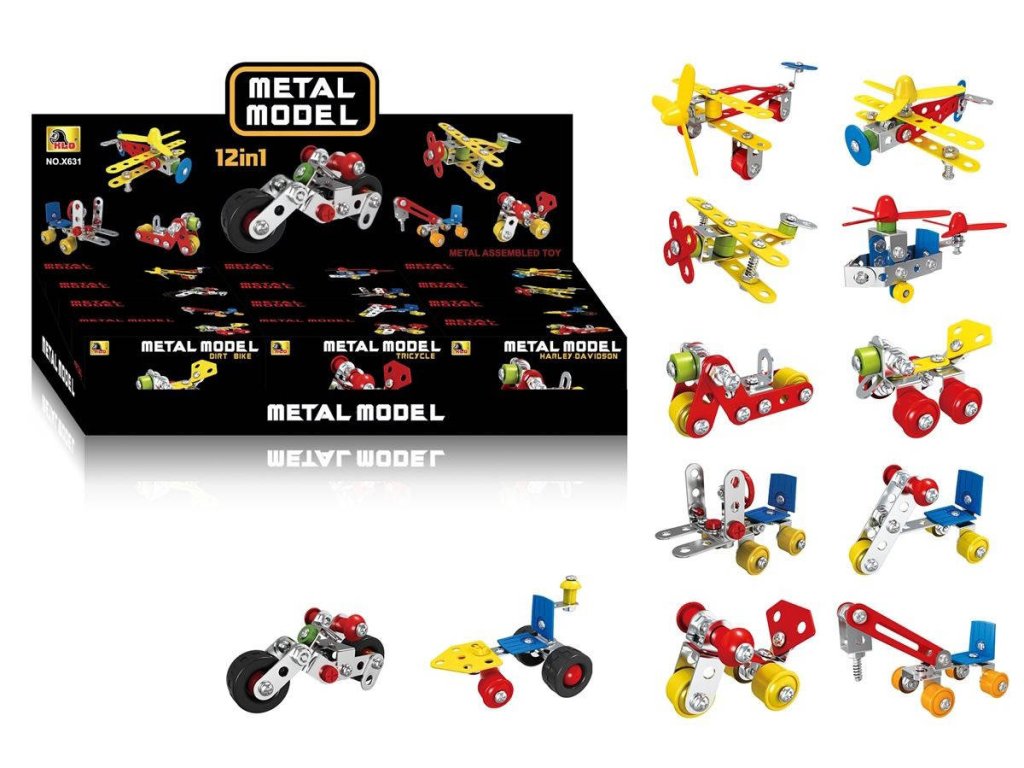 Mini konstrukční stavebnice, skládačka z kovu a plastu Dopravní prostředky. Různé varianty (tříkolka, motocykl, letadlo, vrtulník ... ), velikost modelů 5-12cm, 29-49 dílků.Malá stavebnice, velká porce tvořivé zábavy! Sestav si vlastní dopravní prostředek z kovových a plastových dílků – v nabídce najdeš různé typy vozidel. Ideální pro rozvoj jemné motoriky, logického myšlení a trpělivosti. Skvělý dárek pro malé konstruktéry.