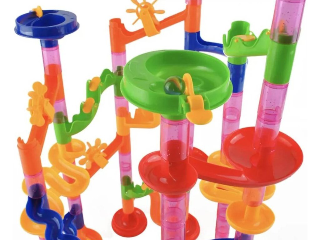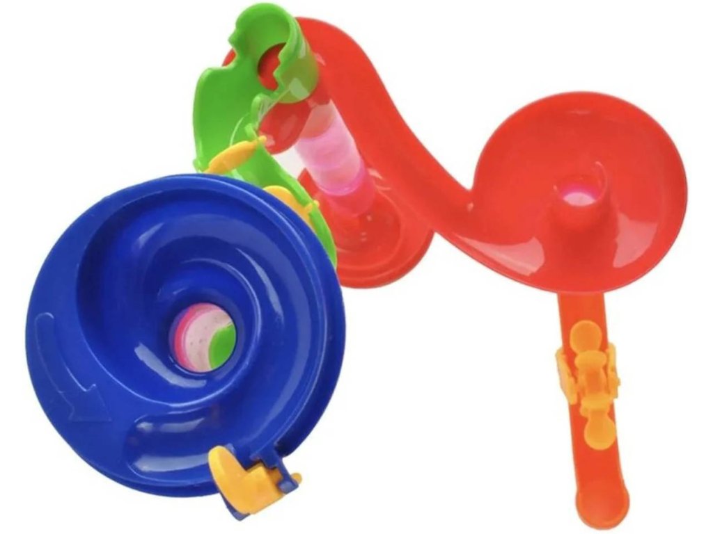 Zábavná barevná plastová stavebnice - kuličková dráha, celkem 80 dílů, výška sestavené dráhy dle fota 54cm.Plastová kuličková dráha slibuje spoustu zábavy. Obsahuje různé zábavné prvky jako mlýnské kolo nebo skluzavky. Kuličkové dráhy v sobě skrývají neobyčejnou stavebnici s velkou porcí další zábavy. Postavte se svými dětmi originální kuličkovou dráhu a pouštějte po ní kuličky, dokud Vás to neomrzí! Pro nejmenší děti je pozorování pohybu kuličky fascinující zábavou.