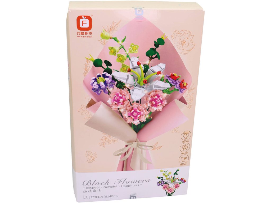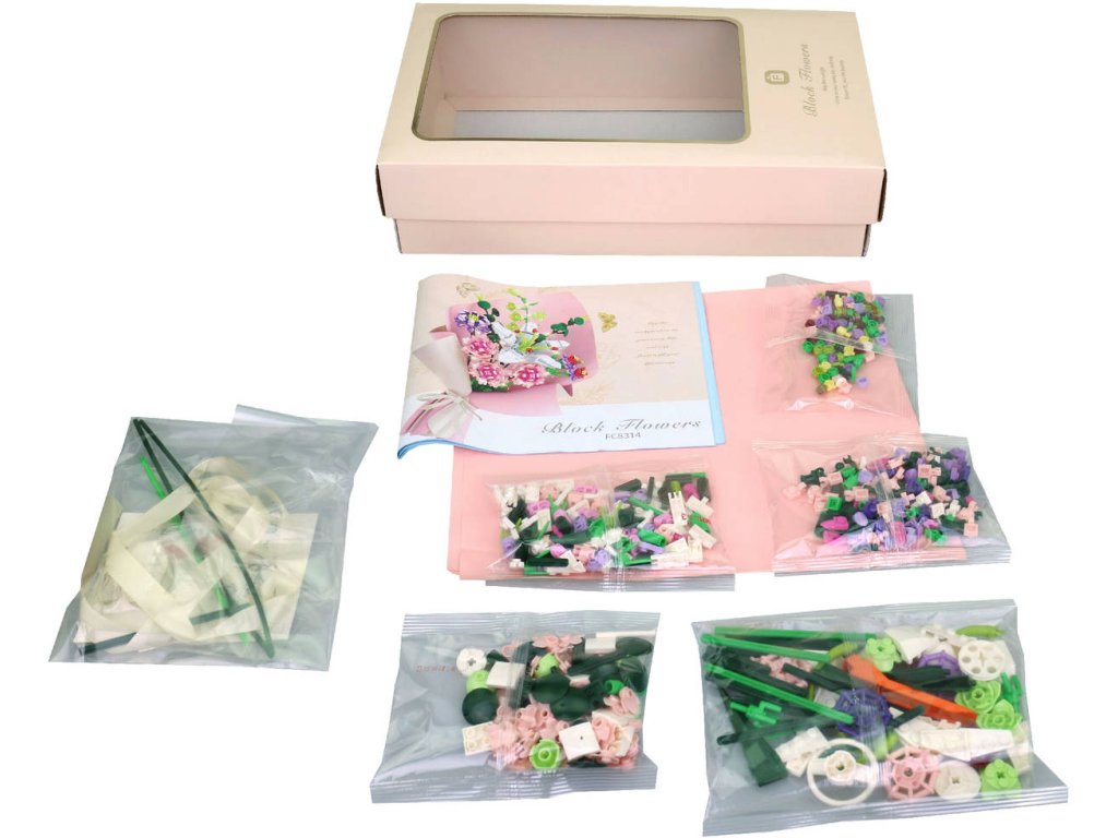 Stavebnice kytice vázaná s balicím papírem 514 dílků na baterie LED Světlo