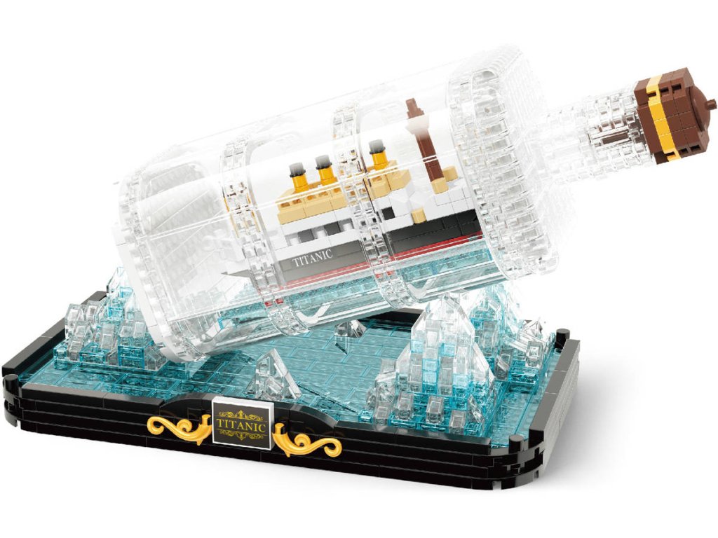 Stavebnice mini KOCO Titanic v lahvi 918 dílků + 2 figurky plast
