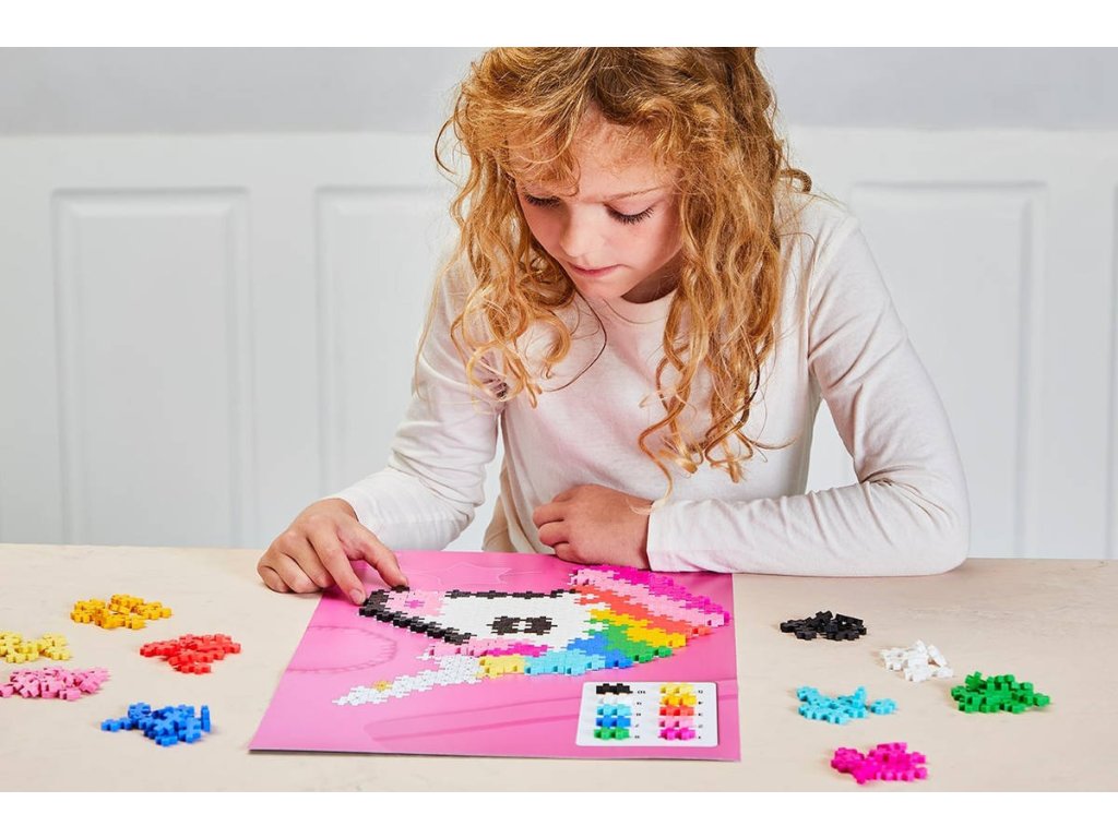 Kreativní sada stavebnice PLUS-PLUS Skládej podle čísel Jednorožec obsahuje 250 dílků. Postavte krásně barevnou mozaiku jednorožce, skládejte barvy podle čísel. Své výtvory můžete využít jako dekoraci. Stavět můžete podle předlohy nebo dle své vlastní fantazie.Mozaika pro děti Plus-Plus je hravá vzdělávací pomůcka, která u vašeho šikuly posílí kreativní myšlení a trpělivost. Pozorujte, jak se drobné dětské prstíky soustředěně pohybují při pokládání plastových dílků na předem připravenou plochu do zajímavých obrazců. Fantazii se meze nekladou, a tak děti sestaví obrázek podle svého vkusu a představivosti, případně využijí přidanou šablonu. Mozaika rovněž pomůže zábavnou formou vašemu malému umělci pochopit tvary a barvy a zlepšovat jemnou motoriku. Sada obsahuje 250 menších dílků, díky nimž ratolesti vytvoří bohatší a rozmanitější mozaiky.