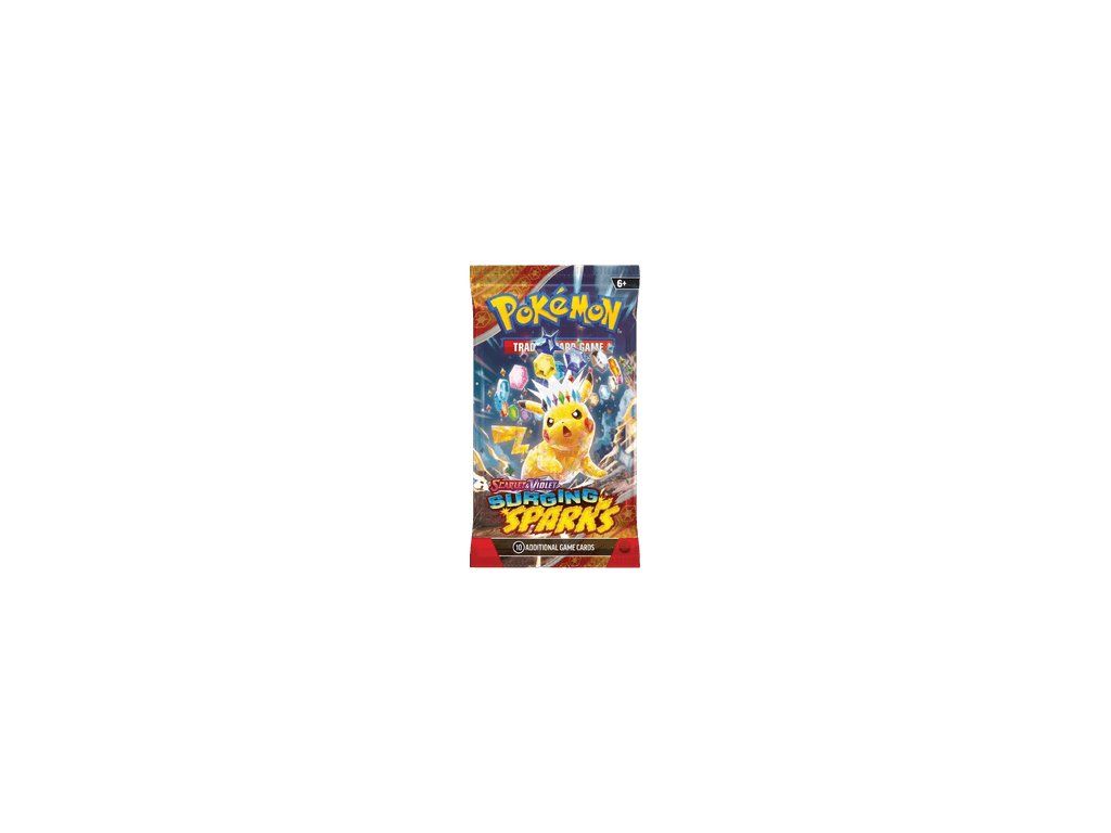 Pokémon TCG: Scarlet & Violet—Surging Sparks – Booster balíček Edice Surging Sparks (Bouřlivé jiskry) je osmou sadou v rámci éry Scarlet & Violet a přináší do hry tropickou atmosféru a silné nové karty. V balení se zaměřte na: 1. ACE SPEC karty: Vrchol setu představuje návrat ultra vzácných a silných ACE SPEC karet (lze mít pouze jednu v balíčku), které výrazně mění hru. 2. Pikachu ex a Tera Pokémon ex: Hlavní hvězdou je Pikachu ex v krystalické Stellar Tera formě, který je k dispozici v několika raritách, včetně Special Illustration Rare a Gold Hyper Rare. 3. Art Rares: Mnoho karet s alternativním uměním s tropickou, plážovou tematikou, včetně oblíbených Dragon Pokémonů jako Latias ex a Hydreigon ex. Každý booster balíček obsahuje 10 náhodných karet (včetně garantované holo karty a Basic Energy).