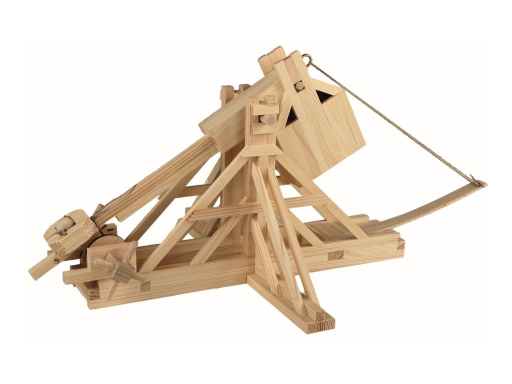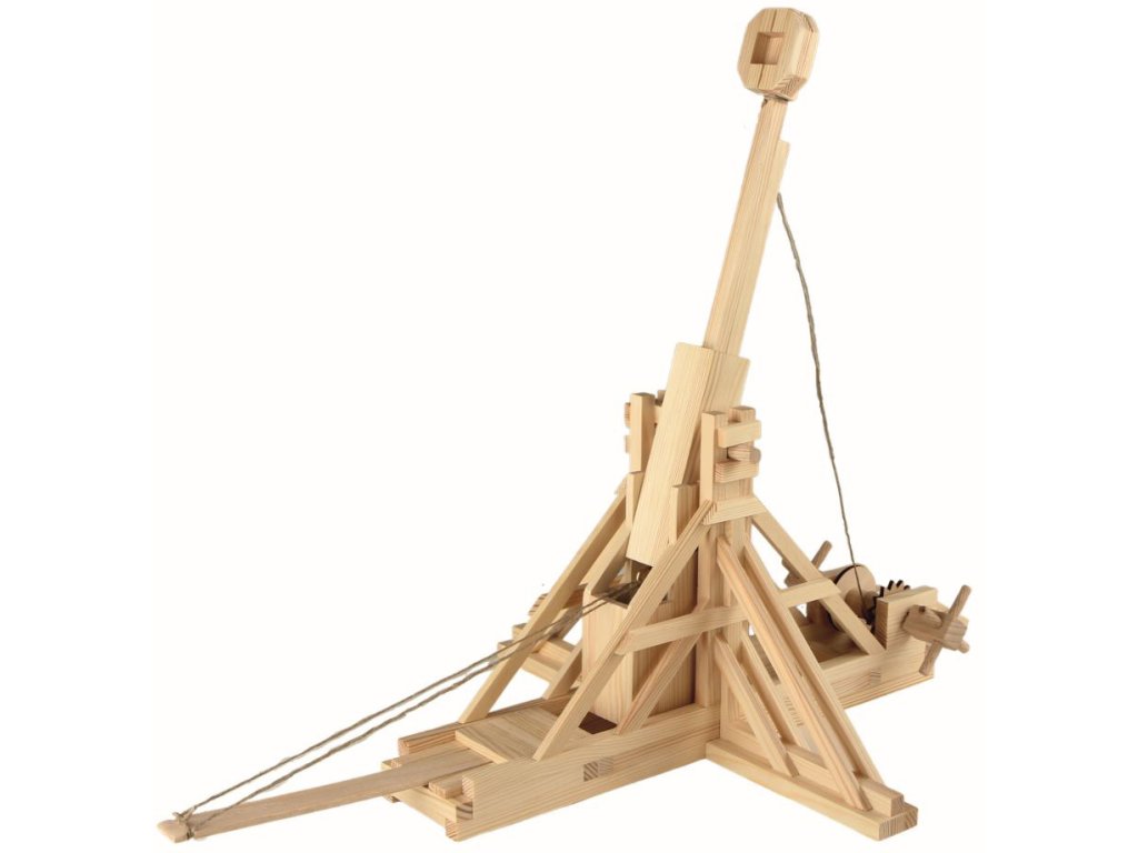 WALACHIA W73 - Trebuchet. Slepovací stavebnice z produktové řady Creative Kit.Trebuchet je velký obléhací stroj. Lze jej považovat za jakýsi katapult , limitovaný však jeho velkou velikostí a pevnou polohou. Využívá principu páky a střely s mnohem menší hmotností než je hmotnost protizávaží jsou tedy vystřelovány s mnohem větší rychlostí, než je jeho pád. Používal se při obléhání a byla to největší nepřímá palná zbraň dostupná středověkým armádám.
