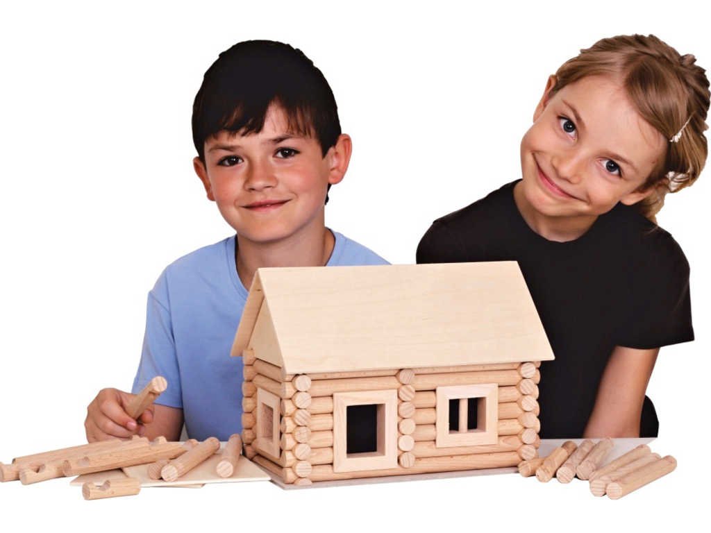 navzájem kompatibilní a umožňují postavit desítky variant staveb. Okna a dveře, slepené z masivních profilů, se vkládají do stěn staveb. Jsou uloženy v praktických kufřících.